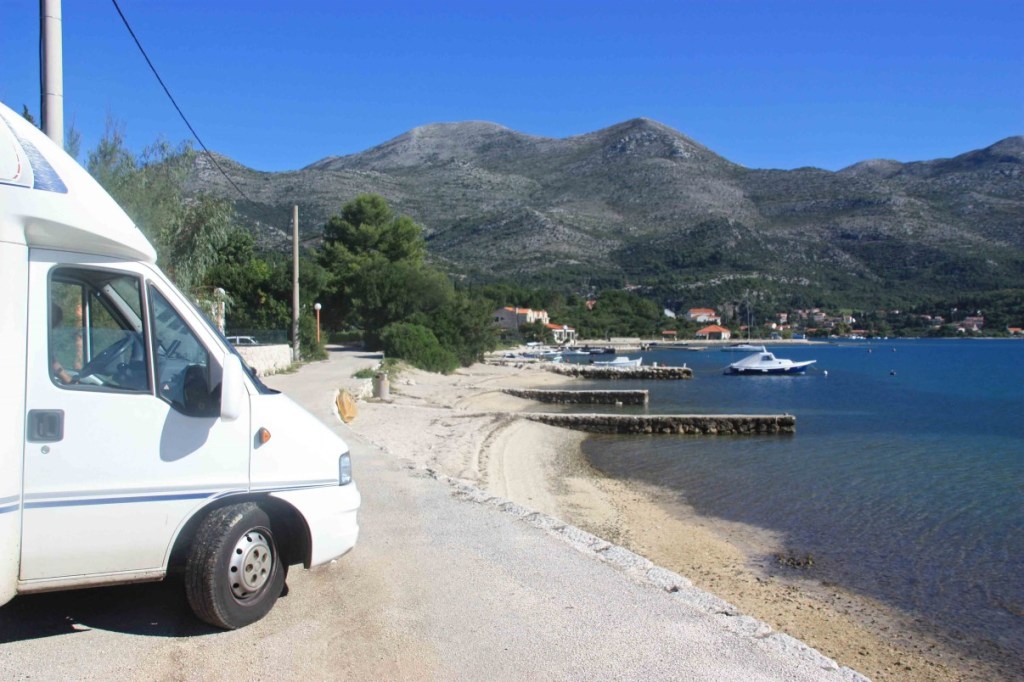 Tegen vieren verlaten we Dubrovnik en rijden langs de kust naar het noorden. Niet ver meer, want we hebben niet echt veel zin meer. Na een paar vergeefse pogingen (alles is al dicht zo laat in het jaar) krijgen we een adresje in Slano. We rijden via een smal weggetje langs de kust het naar autokamp Rogac. Er staat nog een andere camper en we rijden het terrein op. De eigenaresse komt verschrikt aangelopen want de camping blijkt al dicht, maar net als de andere camper mogen we nog een nachtje staan. Er zijn geen voorzieningen meer, maar dat geeft niet, we hebben immers alles aan boord.