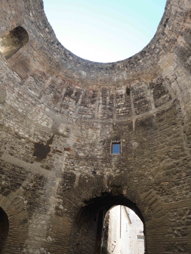 Zaterdag gaan we de dalmacija Split in (een klein busje vergelijkbaar met de dolmus in Turkije). Deze rijden af en aan en stoppen als je je hand opsteekt. Tien minuten later staan we in het centrum voor het paleis van Diocletianus, een van de grootste en best bewaarde paleizen uit de Romeinse tijd. Het paleis is in de 7e eeuw n.Chr. in gebruik genomen als woning door vluchtelingen en sindsdien is het door de eeuwen heen voor diverse doeleinden gebruikt. Leuk is dat wanneer je door de straatjes van het paleis loopt echt het gevoel hebt dat je door een levend centrum loopt met winkeltjes, kerken, etc. die echt ook in gebruik zijn. We komen het paleis binnen via de koperen poort en worden verwelkomd door een groep van 5 mannen die in de akoestiek van de poort werkelijk prachtig staan de zingen.