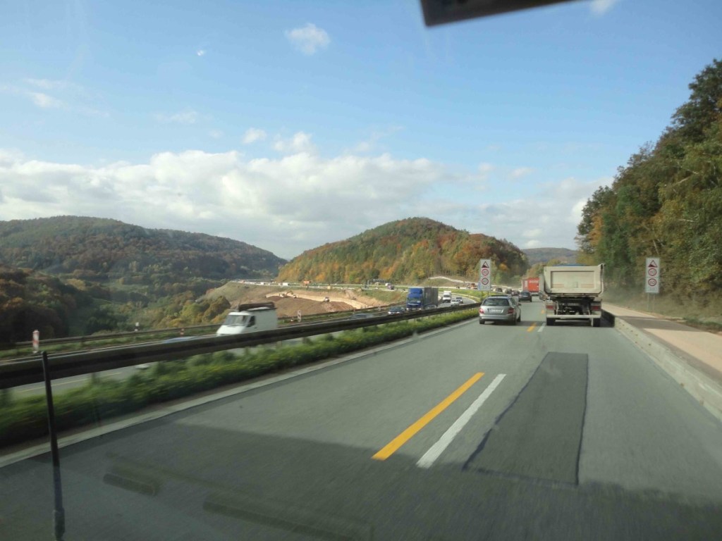 De volgende dag weer een lange rit. Het is druk onderweg. We rijden via de Sauerlandroute, normaal een mooie route, maar het valt ons nu een beetje tegen.