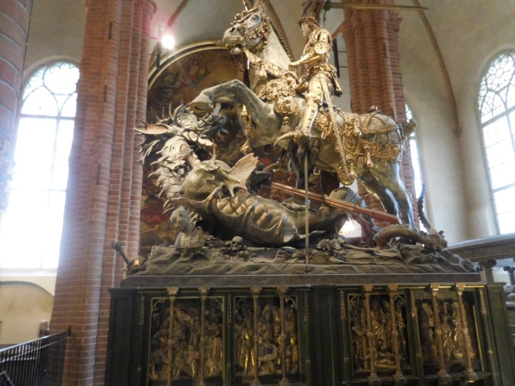 Op de fiets terug het centrum in naar de Storkyrkan Stockholm Kathedraal. Mooie intieme kerk met veel goudwerk.