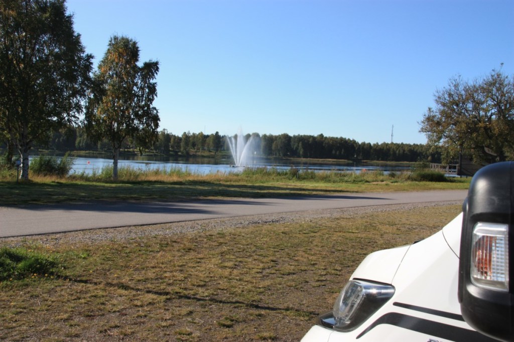 Het is inmiddels prachtig weer en we rijden naar de camping van Lulea voor een vroege stop. Op deze luxe “First Camp” krijgen we een mooi plekje aan het water. Stoeltjes buiten en zitten!