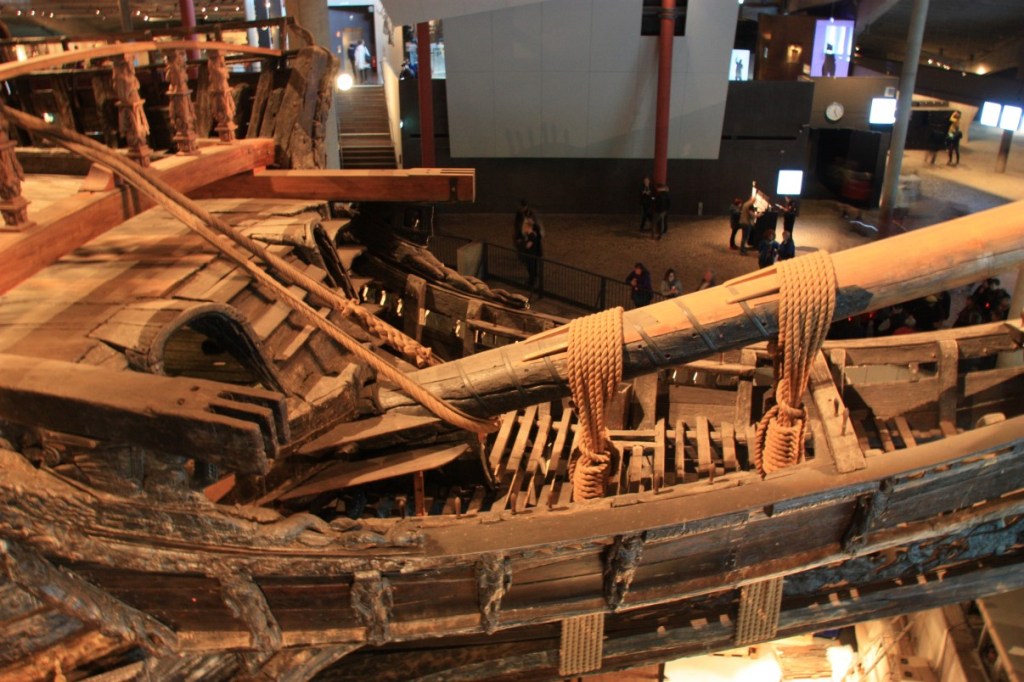 Volgende ochtend opnieuw op de fiets de stad in. Het mooie weer is weer afgelopen en het is buiig. We beginnen in het Vasa museum. Hier wordt een 17e eeuwse boot tentoongesteld die na 333 jaar onder water te hebben gelegen weer gelicht is (een soort Batavia, maar dan origineel).
