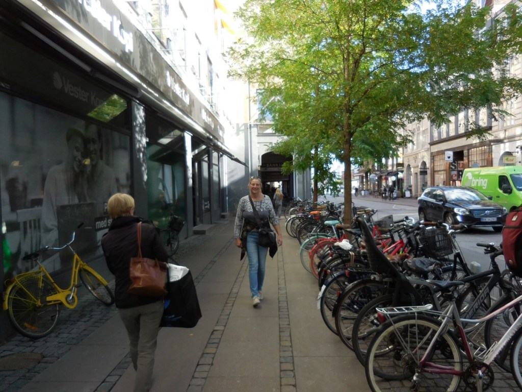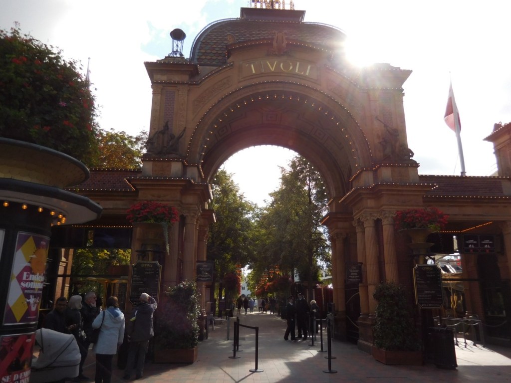 De volgende ochtend gaan we op de fiets Kopenhagen in. Bij het stadshuis in het oude centrum halen we een stadsplattegrond en wat extra informatie over de stad. Er is weer genoeg te zien, dus we moeten keuzes maken. Het is mooi weer dus we willen wandelen in de stad. We komen langs Tivoli en twijfelen even of we naar binnen zullen gaan.