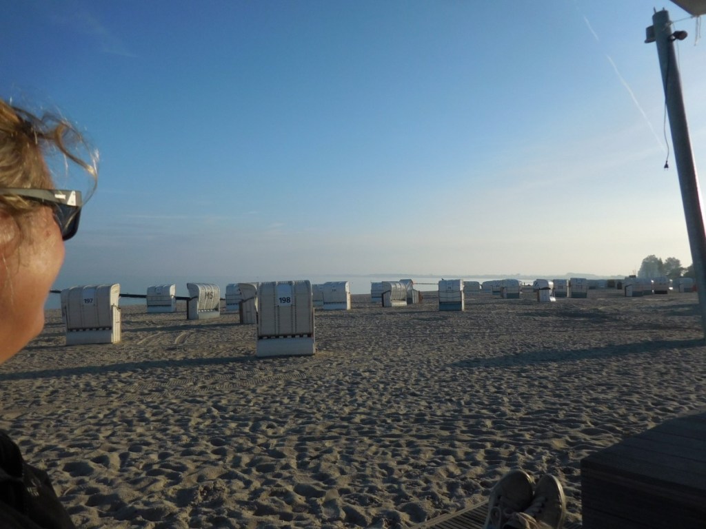 Met de veerboot maken we een rustige overtocht naar Putgarden. Nog een klein stukje rijden en dan stoppen we op de camperplaats bij Grossenbrode aan de Oostzeekust. We wandelen met Sam naar het strand, maar daar mag hij niet op. Het strand is bezet met tientallen (lege) Strandkorven en ‘Hunde verboten’. Langs het strand een brede boulevard, een strand pier, winkeltjes, terrasjes en restaurantjes en daar achter een rij flats met vakantieappartementen en hotels. Ook hier is het naseizoen en veel is al dicht. We genieten lekker nog even van het avondzonnetje aan het strand en eten een hapje in een restaurantje.