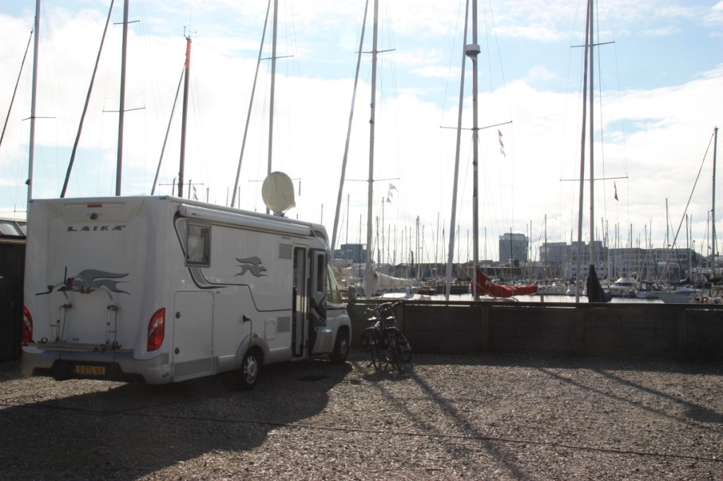 Maar eerst nog het laatste stukje van de reis naar huis. Het is maandag 18 september wanneer we de brug bij Malmö oversteken en Denemarken inrijden. We willen naar de camperplaats aan de haven in het noorden van Kopenhagen. Dat betekent dat we in de spits dwars door Kopenhagen rijden. Dwars door het centrum zelfs! Heb buiten Nederland nog nooit zoveel fietsers gezien. Voor, achter, opzij, maar gelukkig niet onder de auto….. Met het zweet in de handen parkeren we de auto in de haven. We hebben geluk. We kunnen vooraan staan met uitzicht op de zeilboten. Het is druk in de haven. Ondanks dat het al 18:00 uur geweest is zeilen er nog veel boten in en uit. Er is zelfs nog een klasje Optimistjes bezig!