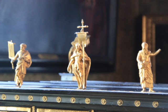 De toren is verbonden met een mooie barokke kerk prachtig versierd met houtsnijwerk in de banken, de preekstoel en het altaar. Ondanks dat we inmiddels meer dan genoeg kerken gezien hebben verveeld dit nooit.