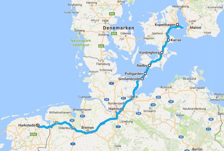 Donderdag 21 september rijden we Kopenhagen uit. Nu via de rondweg en de snelweg (stuk relaxter….). Dan zetten we Tom op ‘snelweg vermijden’ en we rijden een mooie route door landelijk Denemarken naar Rodby.