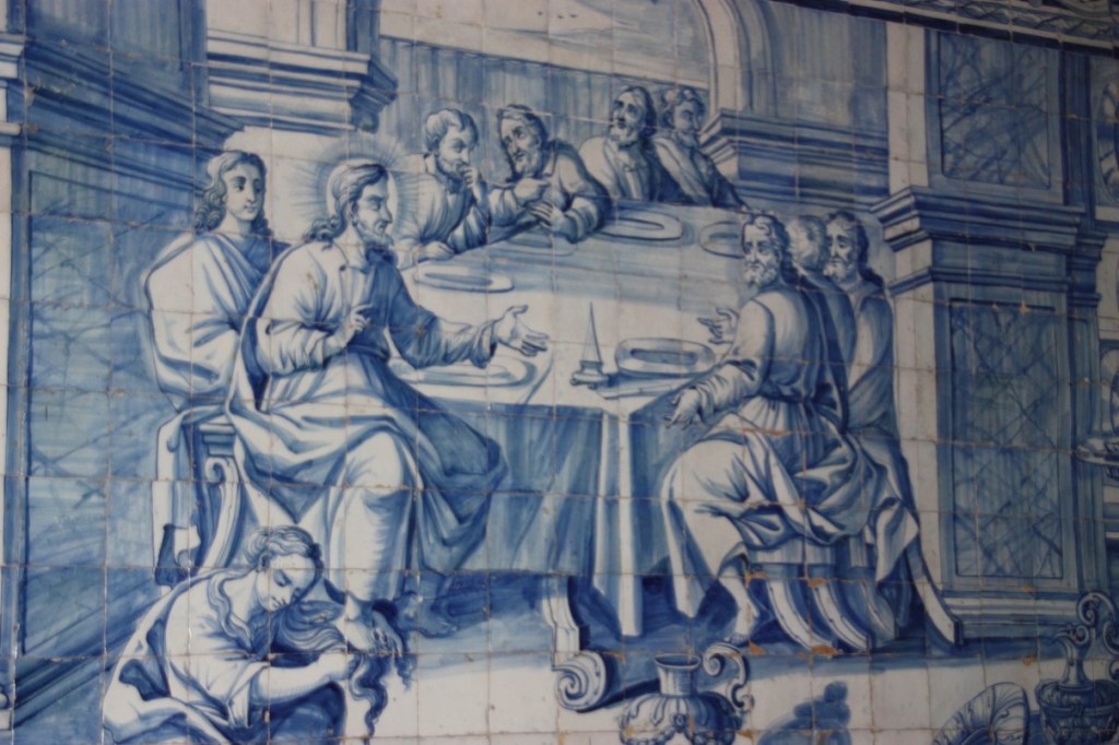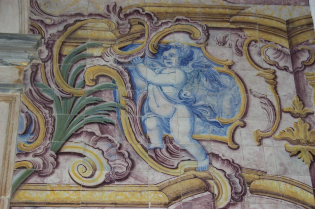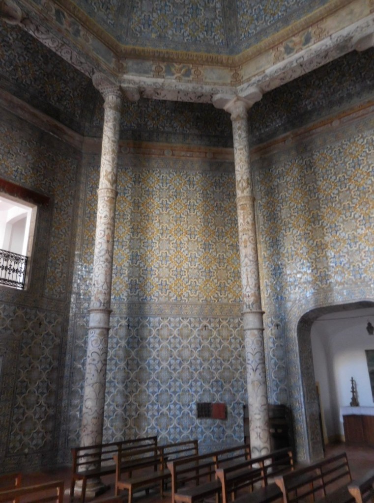 Tenslotte bezoeken we het eenvoudige kerkje Nossa Senhora dos Aflites. Een achthoekig kerkje met van onder tot boven in de koepel prachtige 17e eeuwse geel-blauwe azulejos.