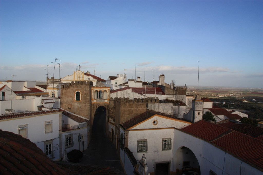 Boven in de kerk is een uitzichtpunt over Elvas. Hier zien we de Arabische Porta da Alcaçova (restanten van de Moorse versterkingen, verdreven in 1230).