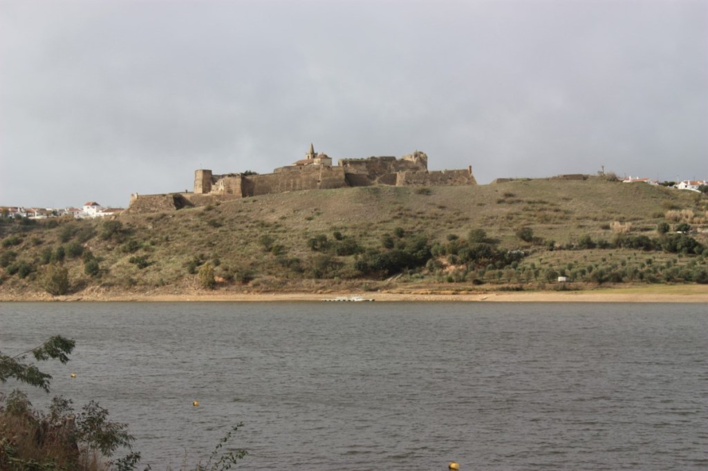 Donderdag is het tijd voor een rit door de omgeving. Het weer werkt eerst niet echt mee, het miezert wat, maar het niet meer zo koud als gisteren. We starten bij Ponte da Ajuda. De oude brug over de Guadiana, de grensrivier tussen Portugal en Spanje, gebouwd in 1510. Er schijnt inmiddels geld te zijn voor de restauratie, maar de werkzaamheden liggen al jaren stil…