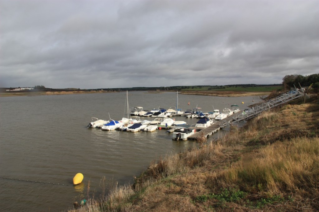 Langs de Guadiana rijden we over een zandweg richting het stuwmeer. Na zo’n 20 kilometer komen we bij de nieuwe jachthaven tegenover Juromenha. Het water staat schrikbarend laag, de boot vlonders die normaal met het water op en neer bewegen kunnen niet lager….