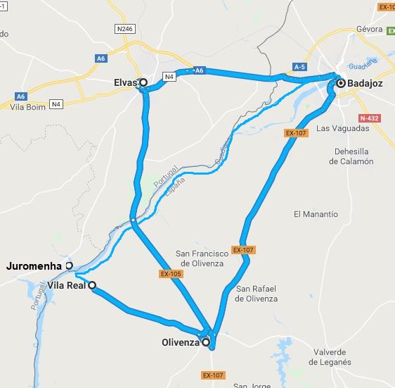 In Olivenza zelf is het feest. Er is kermis en pleintjes en barretjes zijn vol met mensen. Leuk om even rond te lopen. Op de terugweg rijden we ook nog even door Elvas. In tegenstelling tot Spanje is het hier uitgestorven. Elvas met de oude muren, het kasteel, het aquaduct en beide forten ten noorden en zuiden van Elvas zijn prachtig uitgelicht en schitterend om te zien.