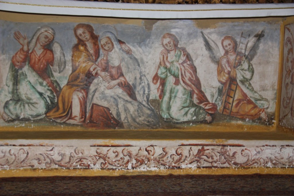 Een bedevaartskerk uit de 19e eeuw. We kunnen er niet in want er wordt gerestaureerd. Door naar Alvito. Daar staat de deur van de kerk open, dus wij naar binnen. Eenvoudige kerk, maar wel van top tot teen betegeld. Een vriendelijke dame probeert ons in het Portugees het een en ander over de kerk te vertellen. Frans komt een heel eind (met handen en voeten), en de dame is helemaal enthousiast…. Leuk!