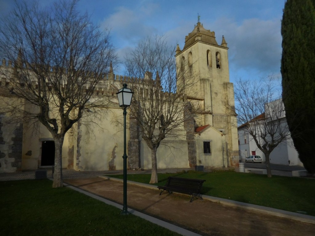 Zaterdag 30 december rijden we na een lekker ontbijtje – je zou er zo maar aan wennen dat je zo verwend wordt 😊 – weg uit Elvas richting Olivenza. Het is mooi weer en we genieten er weer van onderweg te zijn. Via het stuwmeer bij Mourao rijden we naar Requengoz en doen boodschappen bij de Lidl. Toch super makkelijk dat de opstelling in iedere Lidl vrijwel gelijk is… Bij Viana do Alentejo stoppen we bij een enorme kerk midden in de vlakte.