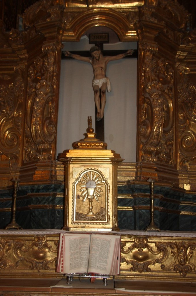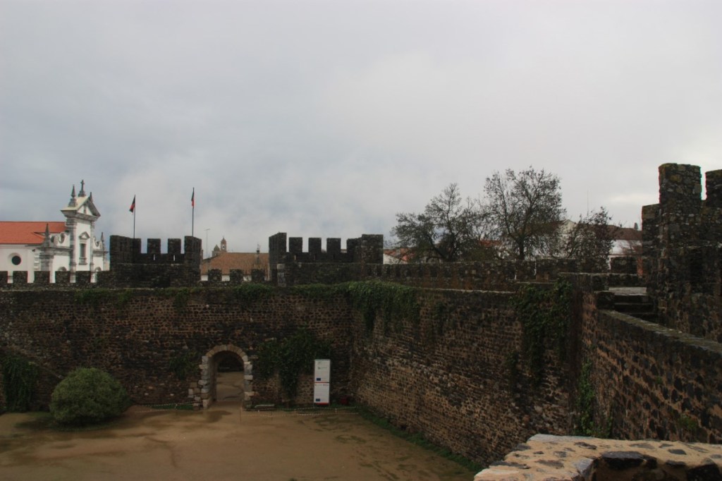 Vrijdag 5 januari verlaten we ons idyllisch plekje op (M)arkadia. Net als we willen vertrekken begint het fors te regenen en het houdt niet meer op. We rijden naar Beja en parkeren aan de rand van het oude centrum. Boven de stad zien we het kasteel uittorenen, dus we lopen die kant op. Dan begint het pas echt te hozen…. We schuilen in de kapel “Our Lady of Piety”, behorende bij het armenhospitaal. Prachtige barokke/rococo aankleding. Grappig is dat het oorspronkelijke marmer bedekt is met nageschilderd marmer…. De beheerder is helemaal blij met bezoek en laat ons de oude doorgang van de nonnen zien.