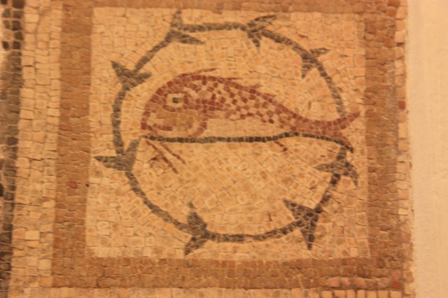 Vanuit de kerk lopen we zo de opgravingen uit Romeins/Arabische tijd op met fraaie mozaïeken. Interessant is het nagebouwde huis uit die periode, wat een goed beeld geeft hoe men in die tijd leefde.