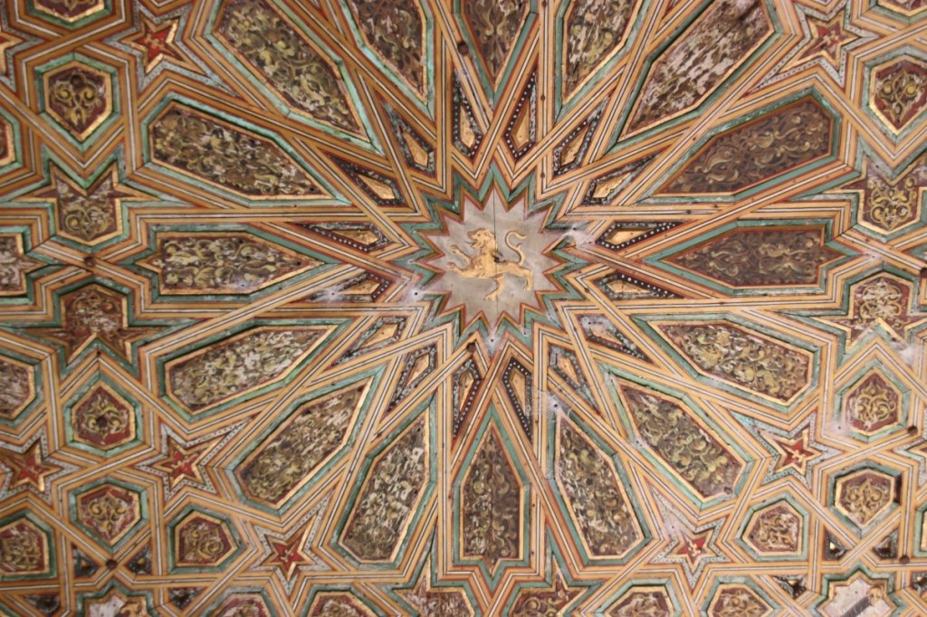 Het is een prachtig paleis wat in de loop der tijd steeds verder uitgebreid is. Zo zijn er verschillende stijlen te zien, van Gotisch tot Moors met christelijke elementen. Erin verweven talrijke Romeinse zuilen afkomstig uit Italica, de Romeinse stad 10 kilometer boven Sevilla. Fantastisch mooie decoraties met geometrische, kalligrafische en florale motieven in het stucwerk en tegeltjes…. Kortom heel bijzonder! Na de rondleiding lopen we nogmaals in ons eigen tempo door het paleis. Echt mooi! Dan door de stad naar het volgende paleis.