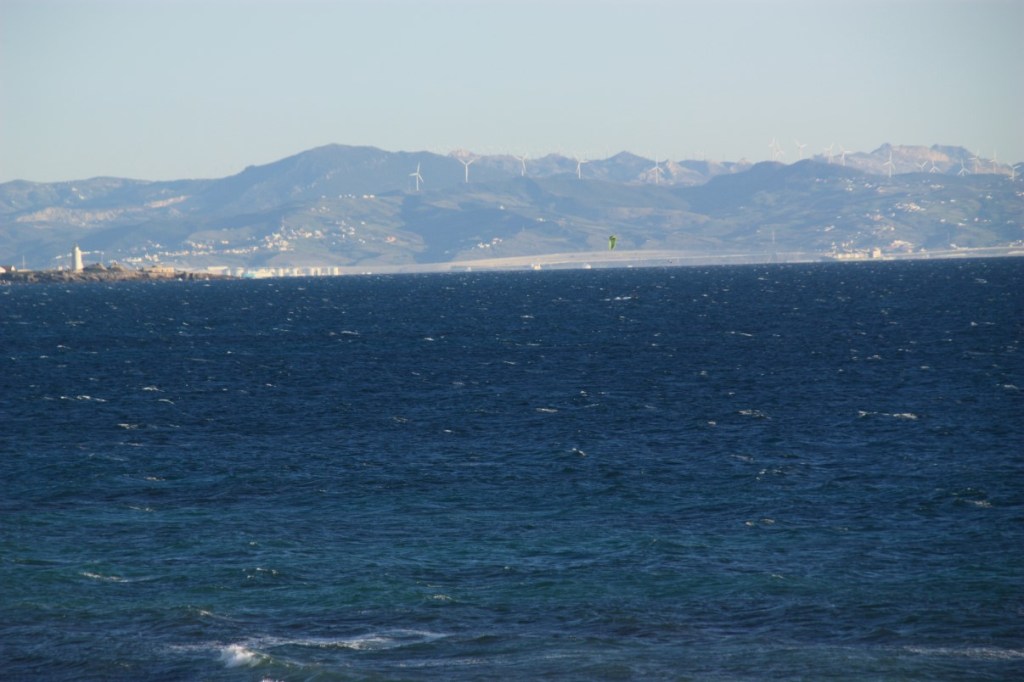 We rijden door langs de kust. Vlak voor Tarifa stoppen we op camping Torre de la Pena. We vinden een prachtig plekje met uitzicht op zee. Een mooie ruwe zee met enorm veel windsurfers. Het is hier door de harde wind en hoge golven een echt surfersparadijs.
