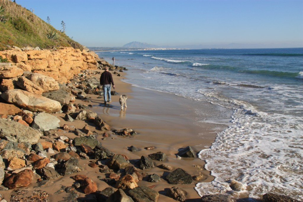 De volgende dagen genieten we van zon, strand en zee. We hebben uitzicht op de kust van Afrika, zo’n 16 kilometer aan de andere kant, en het is prachtig weer. We zitten lekker buiten in het zonnetje, wandelen langs het strand met Sam. Bewonderen de activiteiten van kitesurfers, windsurfers, planksurfers, etc. ’s Avonds genieten we van prachtige zonsondergangen en de lichtjes van Marokko.