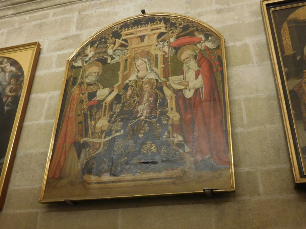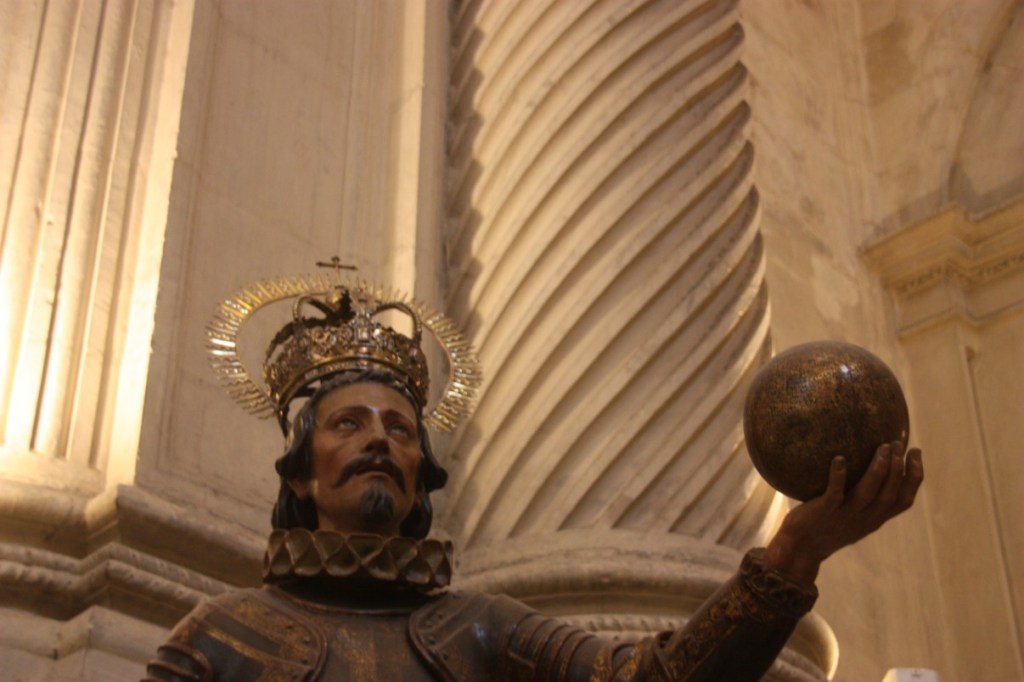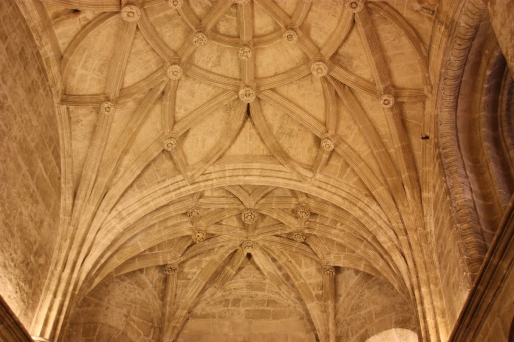 We willen naar de kathedraal met La Giralda (de klokkentoren). De wachtrij valt mee, dus we sluiten aan. Half uurtje later staan we binnen. Wat een enorm bouwwerk met prachtige bogen! De grootste kathedraal in Europa!