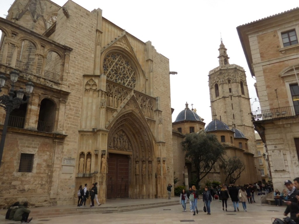 Verder richting de kathedraal. We worden verrast door de vuurwerkshow van de Fallas, het jaarlijkse feest wat van 1 tot en met 19 maart gevierd wordt. Iedere dag wordt rond twee uur ’s middags op het centrale plein een vuurwerkshow gegeven. Het gaat om geluid, ritme en effect. Horen en zien vergaat je. De hele stad dendert en smoked na….