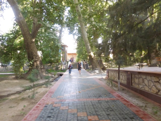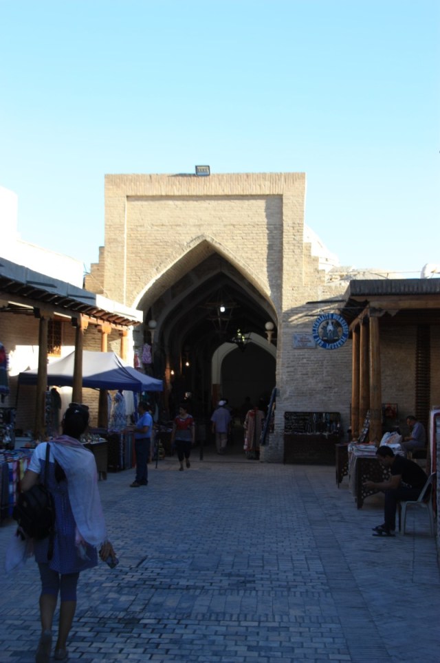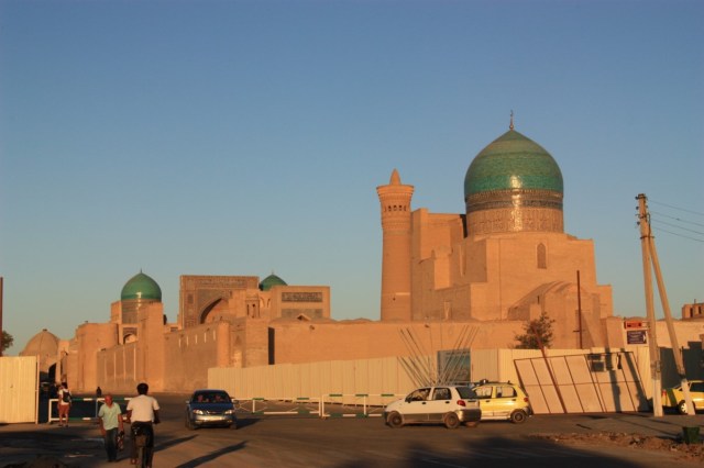 Op het plein een doorkijkje naar de koepeldaken in de buurt en de tegenoverliggende medresse Abdulasiz Chan. We lopen via de registon (zandvlakte) naar de vesting. We verwachten mooi uitzicht over het oude centrum, maar dat valt tegen. We slenteren terug door de stad. Vooral dit gedeelte is ‘over de top’ gerestaureerd.