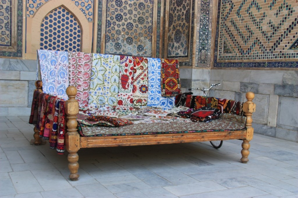 Bij de medresses Ulug’bek en Abdulasiz is het zelfs zo erg dat we niet eens meer naar binnen gaan. Tickets kopen om belaagd te worden door souvenirverkopers, daar hebben we even geen zin meer in.