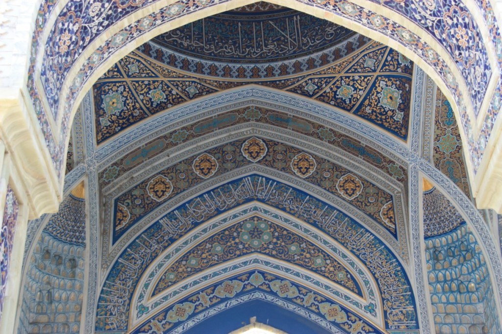 De moskee Kalon en de minaret zijn een verademing. Een oase van rust…. prachtig. De moskee is zo groot dat het haast wel een karavanserai lijkt.
