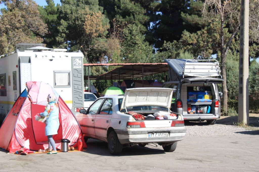 Terug bij de auto maken we ons op voor de laatste nacht in Teheran. Onze buurman ligt al.