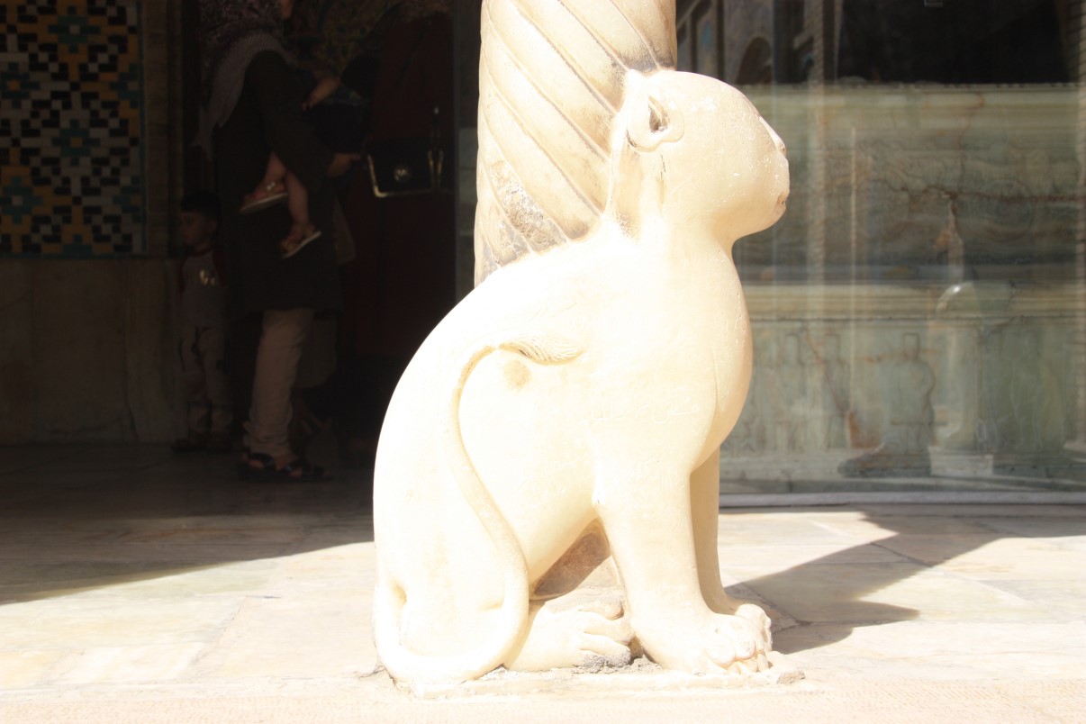Wij mogen hier niet zelf rondlopen maar krijgen begeleiders toegewezen. Wij dames worden in een chador gehesen, in verschrikkelijke bloemetjesmotieven en van puur synthetisch materiaal. Met 40 graden is dit net een smeltoven! Uiteraard is die van mij veel te klein en ik wordt regelmatig gecorrigeerd omdat mijn haar er onder uit komt…. Gelukkig wel op een hele vriendelijke manier. Veel vrouwen komen even naar me toe om me te begroeten en me even aan te raken. Duim omhoog is een universeel gebaar, hoewel ik later hoor dat het in Iran ook een andere betekenis kan hebben…