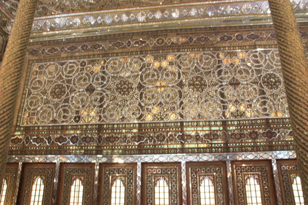 We gaan naar het Golestan paleis. De voormalige residentie van de laatste Sjah van Perzië en een Unesco werelderfgoed. De meeste gebouwen dateren van rond 1850. Een prachtig complex met tuinen en waterpartijen. Veel mooi tegelwerk en duidelijke Europese invloeden. Naast florale en geometrische motieven zijn ook mensen en dieren afgebeeld en dat is niet gebruikelijk in de islamitische wereld. We bezoeken de open veranda met de marmeren troon, een enorm marmeren ligbed, de ontvangsthal met prachtige spiegeleffecten in de muren en de plafonds en tenslotte de wind torens met opnieuw prachtige spiegeleffecten. Het geheel is veel blingbling en flink over de top, maar aan de andere kant ook weer heel mooi gemaakt.