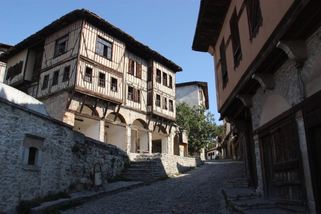 Het is nog 130 kilometer naar Safranbolu. Vreemd, ik kan me van de vorige keer dat we hier waren de gigantische voorstad helemaal niet meer herinneren…… We parkeren de auto op de camping bij een konakhotel in het oude centrum. Safranbolu staat op de werelderfgoedlijst in verband met de historische Osmaanse architectuur. Vanwege de ligging aan een belangrijke handelsroute bouwden rijke kooplui en ambachtslieden hier herenhuizen (konaks) van hout en steen. Heeft wel wat weg van Duitse vakwerkhuizen. In het oude centrum veel smalle steegjes met oude houten herenhuizen en een soort bazaar met kleine winkeltjes (veel handwerk en metaalbewerking).