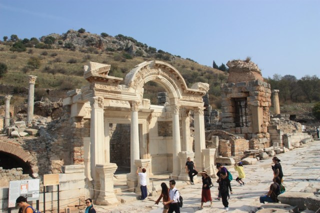 Van verre zie je het enorme theater, met op de voorgrond de lange zuilengang die vroeger naar de haven leidde. Vandaar naar de bibliotheek van Celces uit 114 – 117 n. Chr. Overal prachtige reliëfs ter versiering. De tempel van Hadrianus uit 123 n. Chr. en de poort van Hercules.