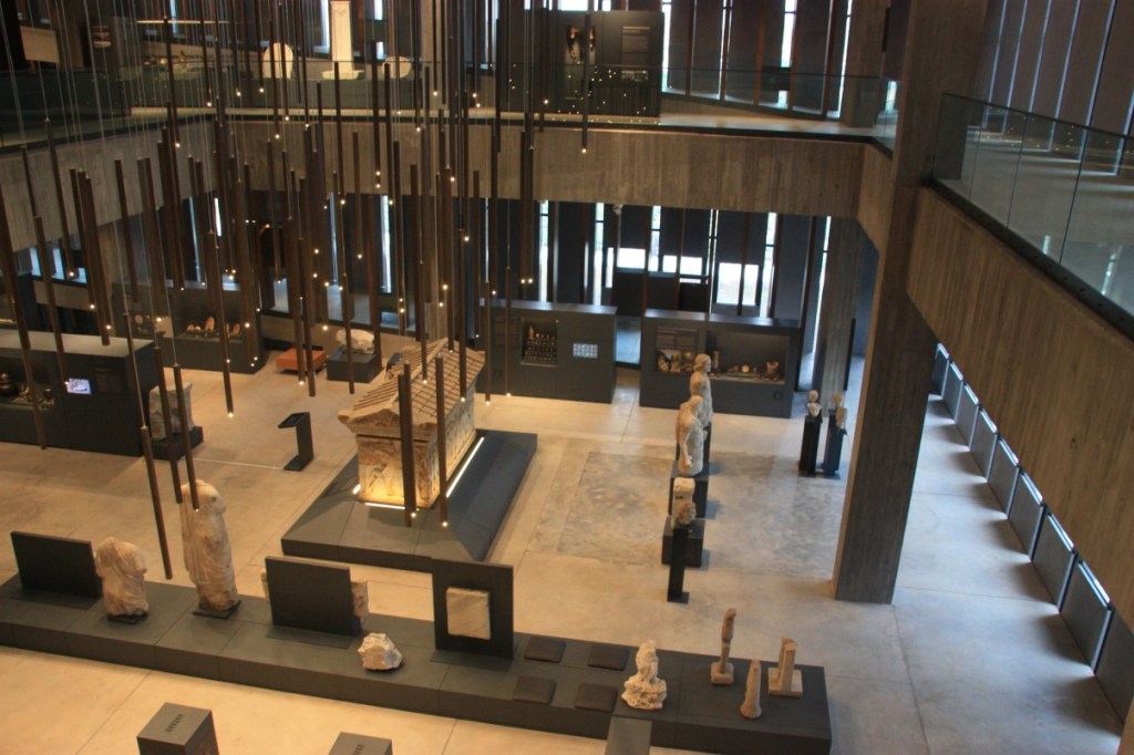 Het museum valt wat tegen. Er wordt nog druk gewerkt aan de inrichting. Veel teksten zijn nog niet klaar evenals de belichting. Kortom moet nog veel gebeuren. Daar en tegen is het gebouw zelf fantastisch. Rondom loopt een helling naar alle verdiepingen. We mogen zelfs even met wat bouwvakkers op het dakterras kijken….