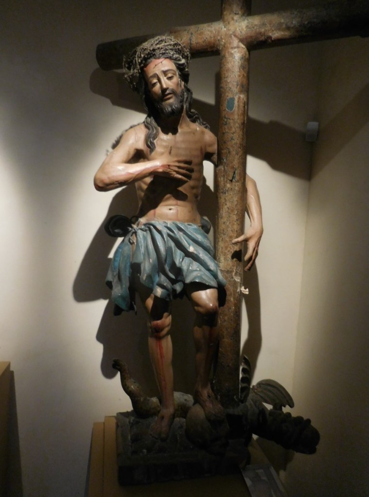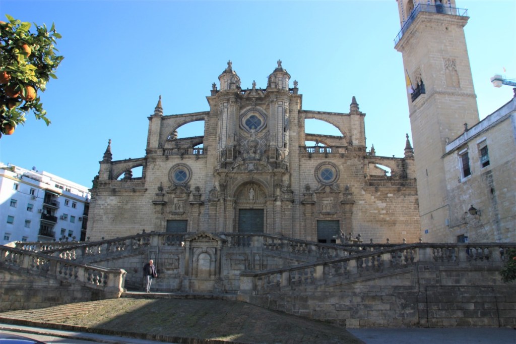 Het is maandag 6 januari, dus Drie Koningen! Nationale feestdag in Spanje en één van de weinige dagen dat echt alles dicht is in Spanje. Toch wagen we het erop en gaan op de fiets de stad in. Inderdaad…. alles is dicht, behalve de kerken. Dus eerst maar de kathedraal in, de Colegiata de San Salvador. Valt tegen, een mengelmoes van stijlen. Bijzonder is wel de entree van de kerk met zijn enorme steunberen en trappenbordes.