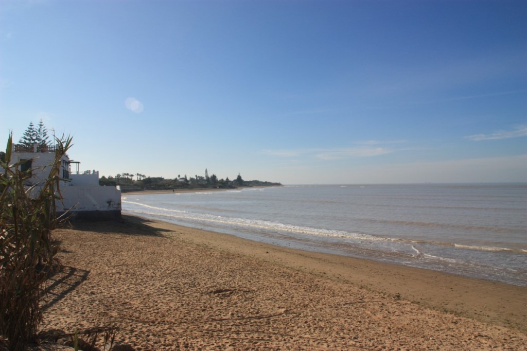 Dinsdag 7 januari. Het is prachtig weer en we hebben even genoeg steden gezien. Op naar het strand! We rijden naar Sanlucar de Barrameda, vlak boven Cadiz. We staan op een camperplek op 50 meter van het strand. Nou ja, strand? Bij vloed is er geen strand en slaan de golven tegen de huizen en rotsen. Bij eb zijn er honderden meters strand met stenen, schelpen en poeltjes. Sam is helemaal in zijn element. Hij is dol op het strand en alles wat hij daar tegen komt. De gemiddelde leeftijd is ook onder de honden hoog…..