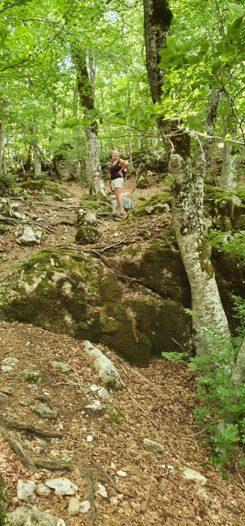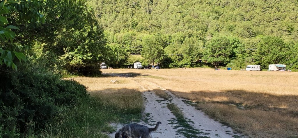 We rijden door de bergen naar Parco Nazionale d’Abruzzo. Onderweg veel mooie kleine stadjes boven op de heuvels. We stoppen op natuurcamping Le Quite. De camping ligt op 1000 meter hoogte bij Villetta Barrea vlak bij een stuwmeer. Het is een prachtige ruime camping aan de rivier. Je zoekt maar een plekje en meestal ligt er wel een vuurplaats voor de deur. Prachtig uitzicht op de bergen. En…. er is wind, de temperatuur is ’s avonds om zes uur onder de 30 graden. Super!!! Als ik ’s avonds in het schemer Hannes uitlaat komen we een roedel herten tegen. Hannes is er stil van, ik ook.
