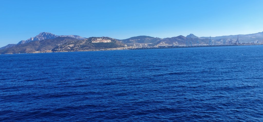 Zaterdag 5 november, om 10:10 rijden we de haven binnen en sluiten aan in de wachtrij voor Tanger Med. We zijn nummer 4. Nummer 1 en 2 zijn reisgenoten en we maken kennis met elkaar. We zijn ruim op tijd en de papieren van Hannes worden uitgebreid gecontroleerd. Maar goed dat we het volgens de regels gedaan hebben! Keurig op tijd mogen we aan boord. De boot is lang niet vol, maar vertrekt wel een half uur te laat.