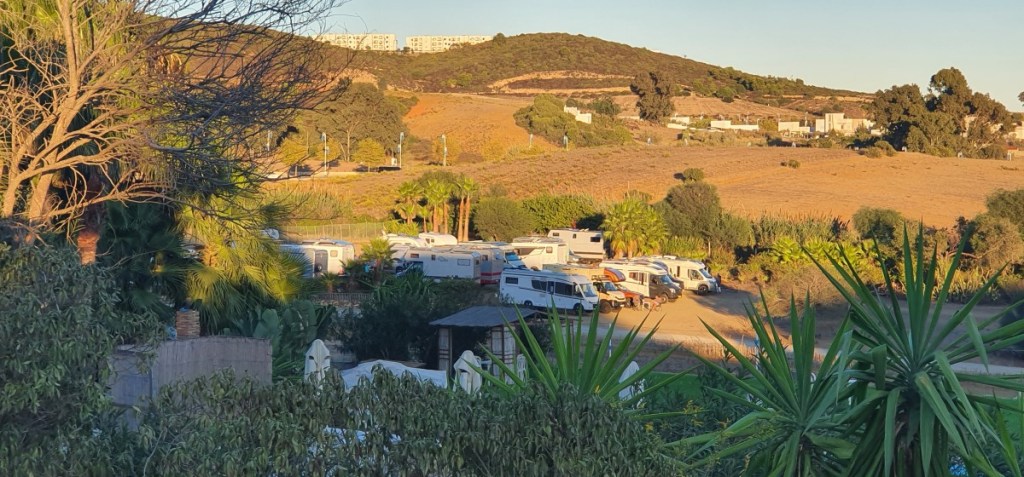 De volgende ochtend hoeven we niet ver meer naar onze voorlopige eindbestemming Tarifa. Rond drie uur rijden we camping Torre de la Pena op en krijgen een mooi plekje met uitzicht op zee. Prima voor de komende dagen.