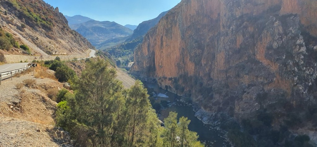 Zondag 6 november is de eerste reisdag. Eerst bij een supermarkt gestopt om een Marokkaanse simkaart te kopen en dan verder langs de kust. Bij Qued Laou gaan we het binnenland in langs de wadi (rivier) Laou. Een prachtige rit door het Rifgebergte.