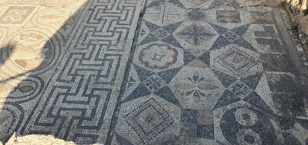 Om 4 uur hebben we met de groep afgesproken bij Volubilis. We krijgen een rondleiding van een gids door deze oude Romeinse stad, waar tussen 33 en 300 na Chr. zo’n 15000 mensen gewoond hebben. We zien grote Romeinse villa’s met prachtige mozaïeken, zuilengalerijen, maar geen theater! Blijkt dat nog maar een kwart van de stad uitgegraven is.