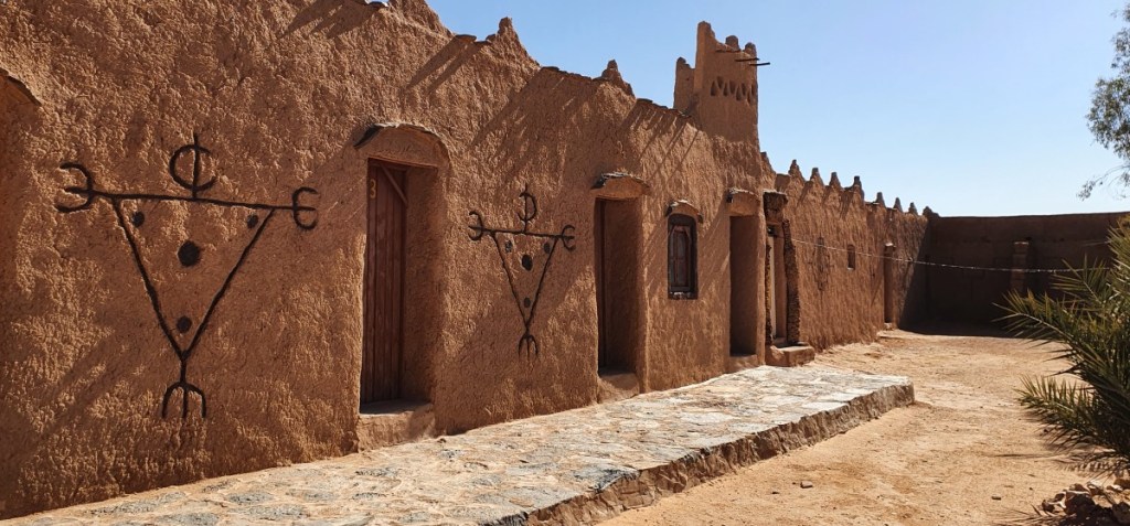 Nadat we de boodschappen opgeborgen hebben (onder andere 10 losse eieren in een zakje…. allemaal heel gebleven!) rijden we verder naar Merzouga. Daar tegen de prachtige rode zandduinen van Erg Chebbi ligt onze overnachtingsplaats bij het hotel Nomad Palace.