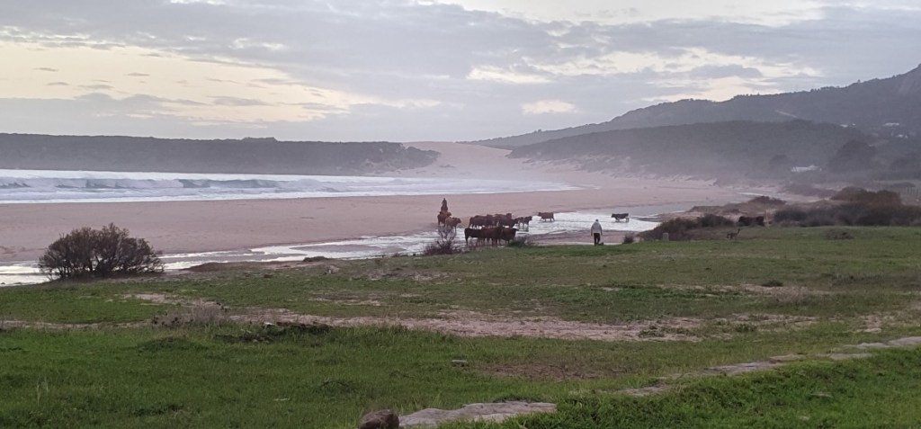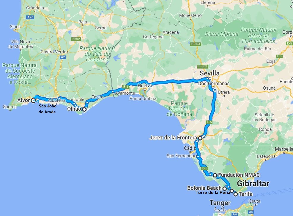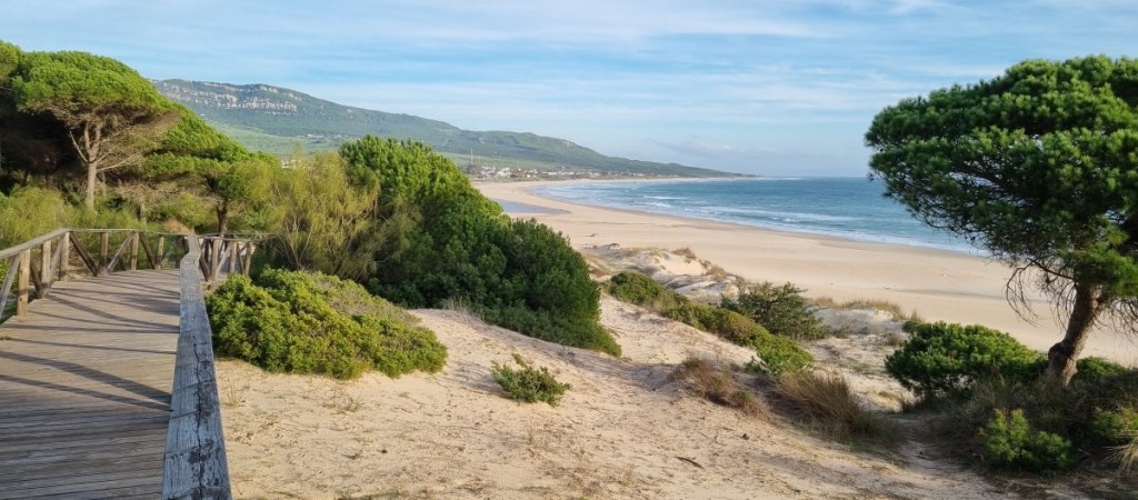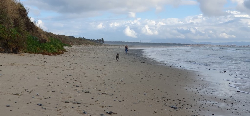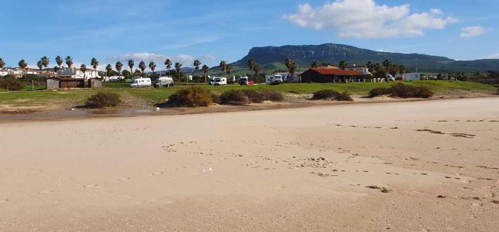 Maandag 19 december is het dan toch eindelijk weer zover. We gaan op pad. We nemen afscheid van de buren, als je ergens wat langer staat ken je toch ineens een hoop mensen…. We gaan niet ver vandaag. Zo’n 30 kilometer naar het westen naar Bolonia. Een in de winter uitgestorven surfparadijsje aan een prachtig strand. Normaal mogen hier geen campers aan het strand staan, maar nu worden we gedoogd. Aan het strand liggen de Romeinse opgravingen van Baelo Claudia.