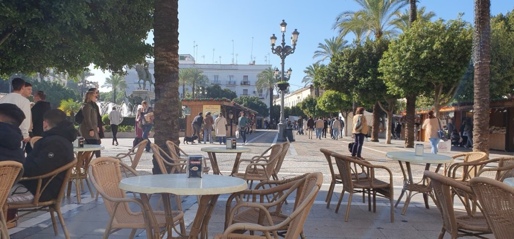 De volgende ochtend opnieuw op de fiets naar de Police National. Nog steeds dicht ondanks de vermelde openingstijden. Het is natuurlijk ook vlak voor kerst… Een vriendelijke politieagent probeert ons te helpen, maar helaas. De mevrouw van het bureau gevonden voorwerpen is vrij. We gaan nog even het centrum van Jerez de la Frontera in. Zijn we tenslotte niet helemaal voor niets hier gekomen… We slenteren een uurtje door het gezellige centrum. Het is druk, iedereen moet nog even boodschappen doen voor kerst.