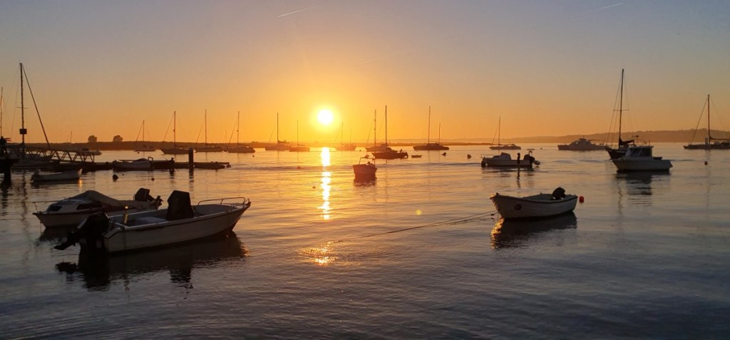 Al snel hebben we een dagelijkse routine ontwikkeld. Wandelen door het stadje naar het strand. Op het strand met Hannes balletje gooien. Beetje lezen op het strand, genieten van het zonnetje…. Dan terug wandelen over de plankieren langs de baai. Er liggen prachtige wandelroutes over de plankieren door het duingebied langs de baai en de stranden. Voor vogelaars prachtige uitzichtpunten om onder andere de zeearend te bewonderen. Tenslotte in de haven op een terrasje een biertje drinken (het verschil tussen een pilsje en een ‘emmer’ bier….). Zonsondergang in de haven en dan weer door het stadje terug naar de camping.