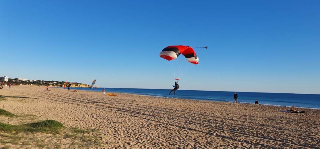 In plaats van surfers zijn het hier de parachutisten die voor het spektakel zorgen. Vlak bij Alvor ligt het centrum voor parachutespringen in de Algarve. Ze landen op het strand, dus dat is spectaculair om te zien.