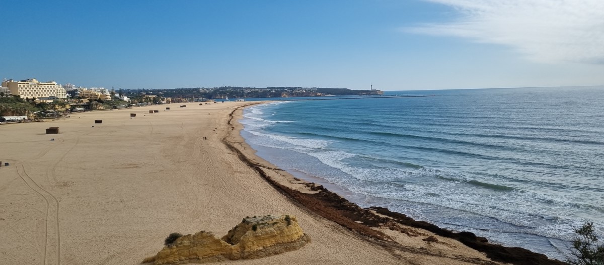 We maken een mooie fietstocht naar de vuurtoren van Ponta do Altar. Binnendoor langs de kust naar Portimao, over de boulevard naar het fort van Santa Catarina en dan langs de haven naar de brug over de rivier de Odelouca. Aan de andere kant van de rivier fietsen we verder langs Ferragudo en het kasteel van São João do Arade naar de vuurtoren. We worden beloond met prachtig uitzicht over de rotskusten en fraaie zandstranden. Heen en terug een kleine 40 kilometer. Hannes doet het goed in de fietskar, maar liever racet hij over het strand achter de balletjes aan of, en dat vinden wij niet zo leuk, achter de vogeltjes aan.