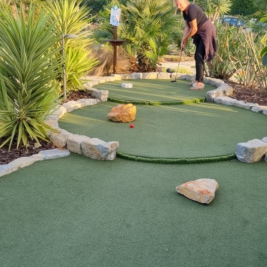 Vlak naast de camping ligt Golfland…. en ja, wij hebben een rondje midgetgolf gedaan met zijn tweetjes. Eigenlijk best heel leuk voor een keer. Is ook een prachtig aangelegd parcours, had ik in Nederland nog nooit gezien.