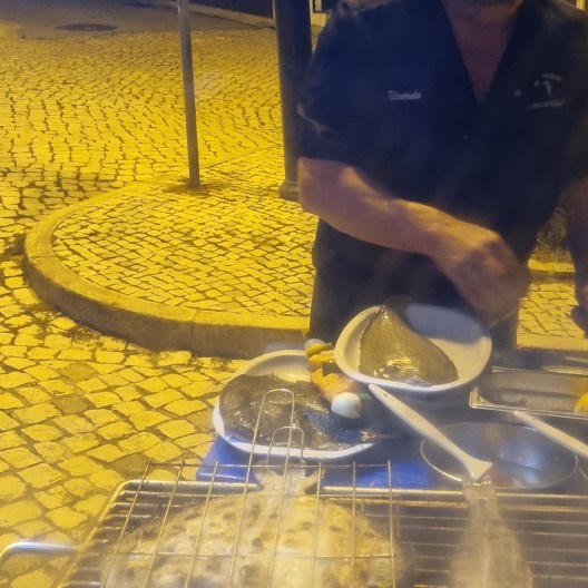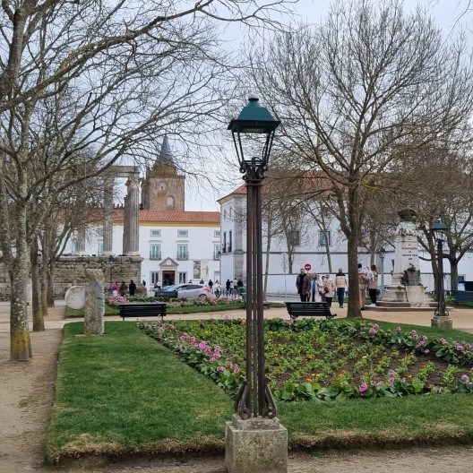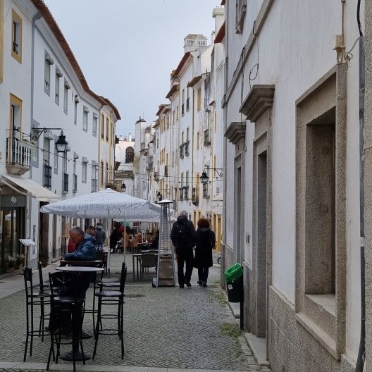 We zitten vlak bij Evora en besluiten op het grote plein te overnachten. Eerst nog een rondgelopen door het stadje en lekker gegeten op een overdekt terras.