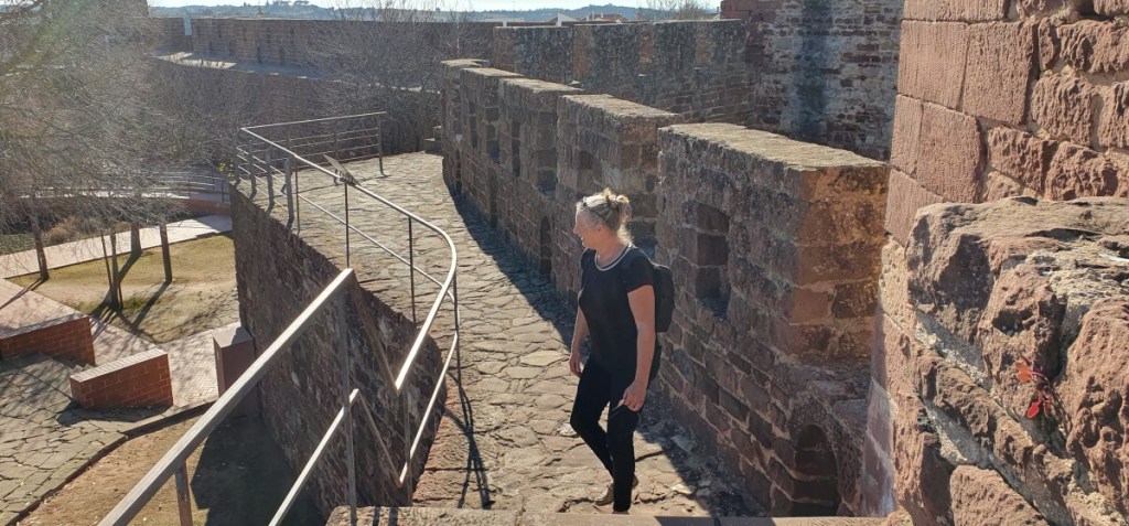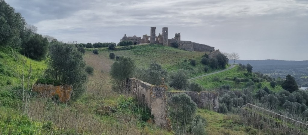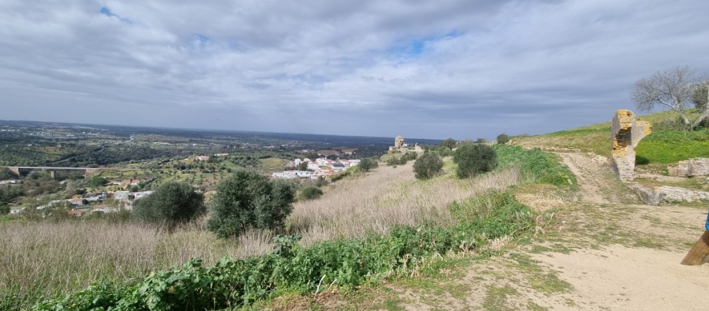 Slecht geslapen. Veel lawaai. Was natuurlijk ook zaterdagavond! We rijden weer terug naar de N2 bij Montemor de Novo. Boven het stadje torent de ruïne van een groot kasteel uit. We rijden omhoog en gaan met Hannes aan de wandel. Prachtig uitzicht!